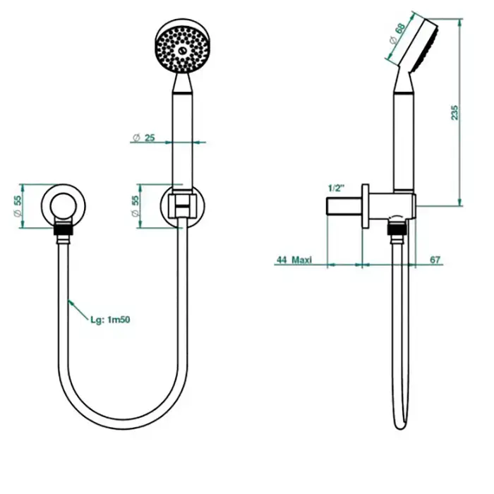 THG Island Душевой комплект с ручным душем, держатель, подвод воды и шланг 1500 мм., цвет: Soft gold