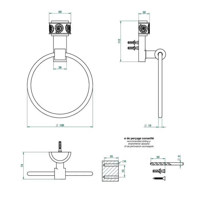 THG Island Полотенцедержатель-кольцо 18см., подвесной, цвет: Soft gold