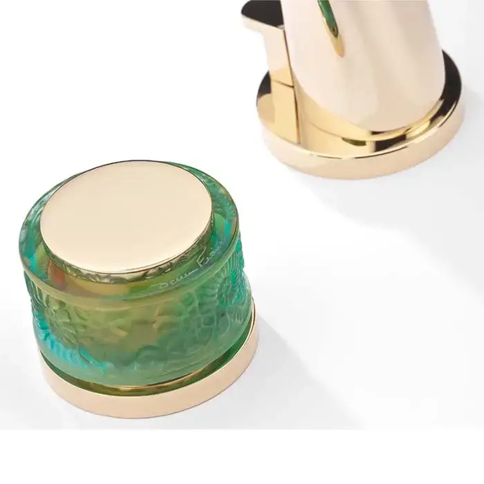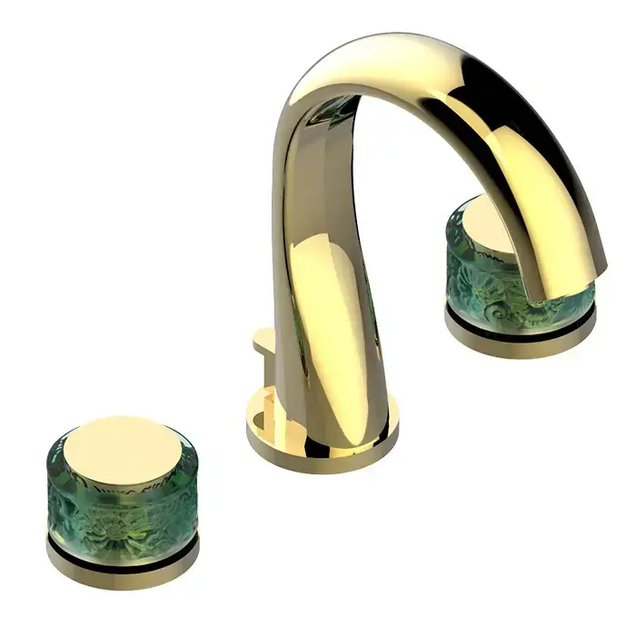 THG Island Смеситель для раковины на 3 отверстия, ручки с подсветкой, с донным клапаном, цвет: Soft gold
