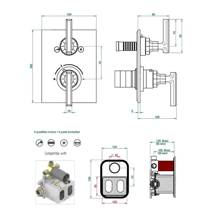 THG Les Ondes à manettes Смеситель для душа, термостатический, с переключателем на 3 потока, цвет: Matt nickel