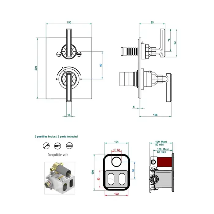 THG Les Ondes à manettes Смеситель для душа, термостатический, с переключателем на 3 потока, цвет: Matt nickel