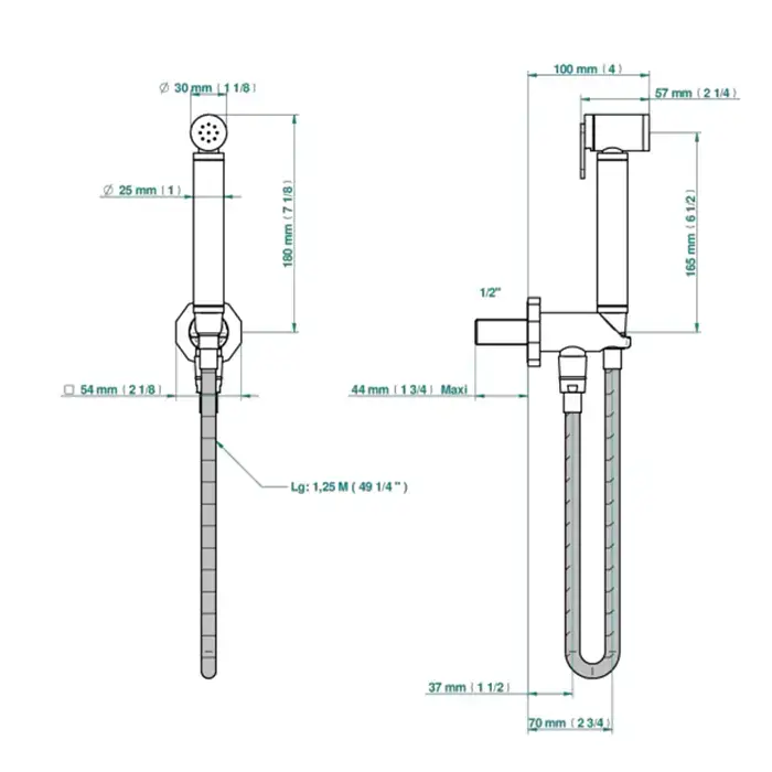 THG Les Ondes Гигиенический душ, с настенным держателем, подводом воды и шлангом 125см., цвет: Matt nickel