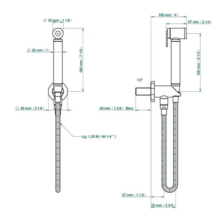 THG Les Ondes Гигиенический душ, с настенным держателем, подводом воды и шлангом 125см., цвет: Matt nickel
