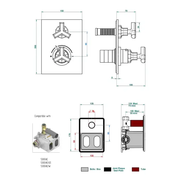 THG Les Ondes Смеситель для душа, встраиваемый, термостатический, с переключателем на 3 потока, цвет: Soft matt gold