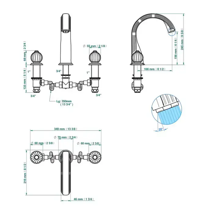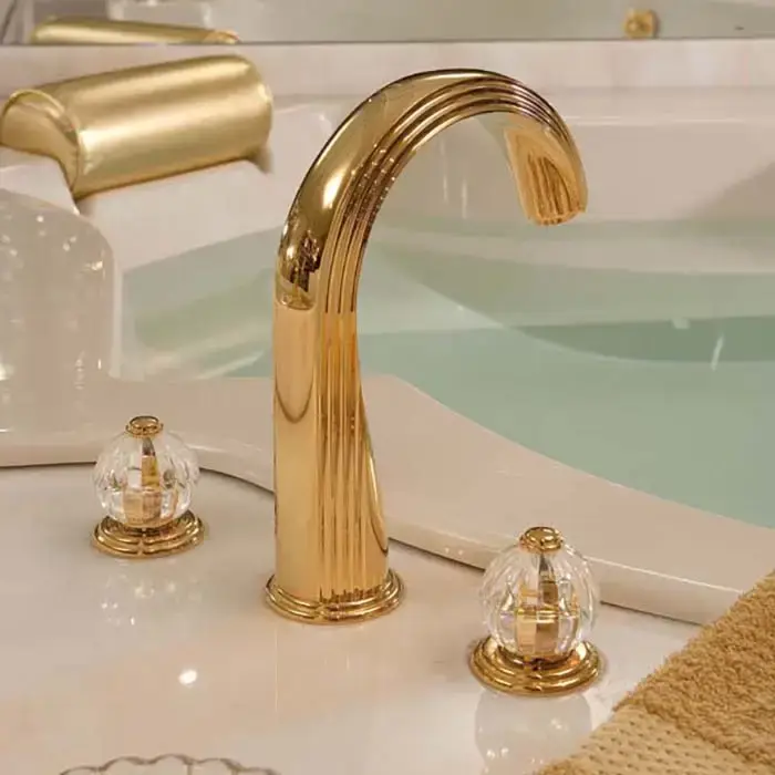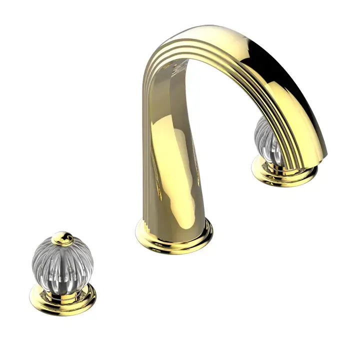 THG Mandarine clear crystal Смеситель для раковины на 3 отверстия, с донным клапаном, цвет: полированное золото