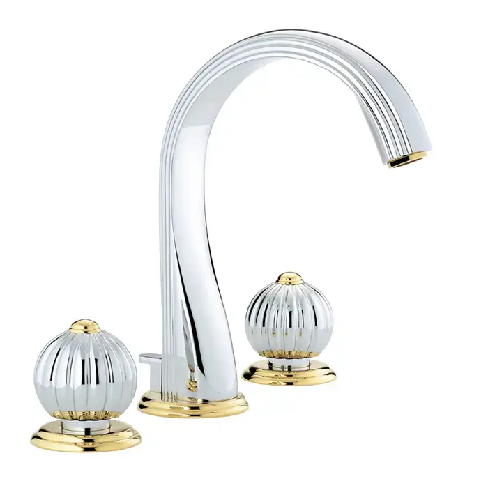 THG Mandarine metal Смеситель для раковины на 3 отверстия, с донным клапаном, цвет: хром/золото