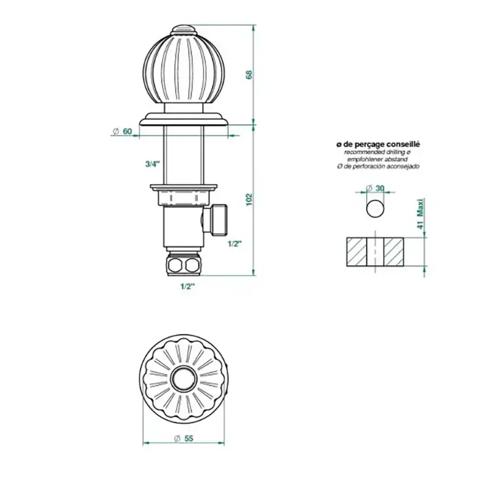 THG Mandarine metal Вентиль смесителя для раковины, цвет: хром/золото