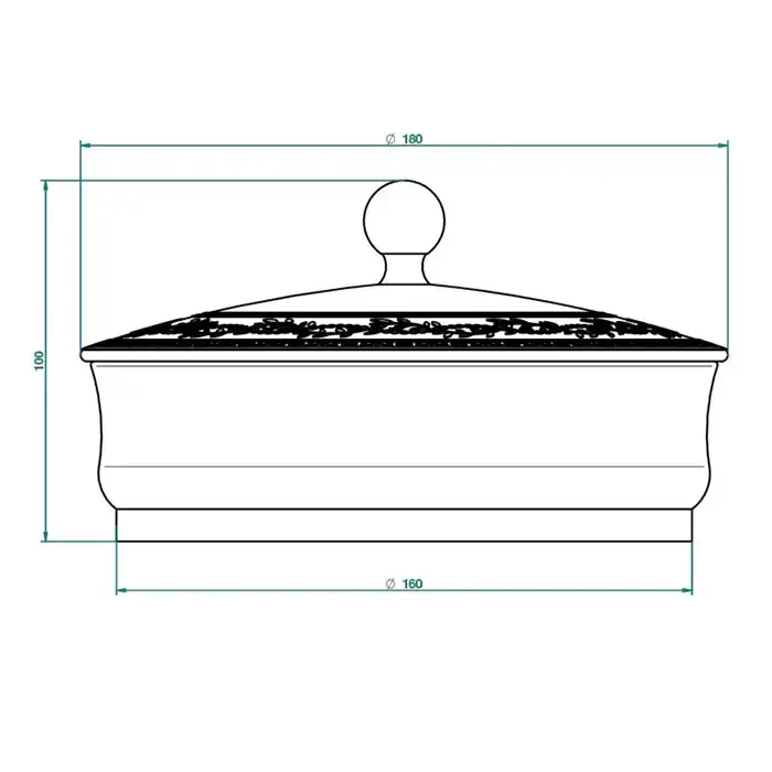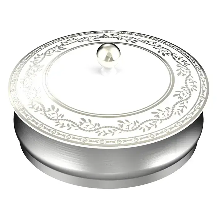 THG MARQUISE BLANC DECOR PLATINE Китайская лакированная коробка с белой керамической крышкой Ø180 мм., big size, декор платина, цвет: серебро