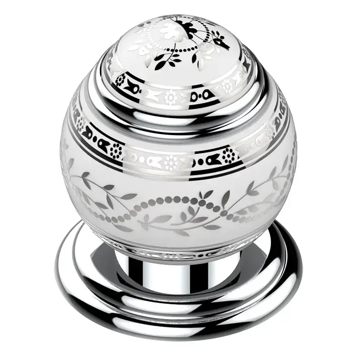 THG MARQUISE BLANC DECOR PLATINE Китайская лакированная коробка с белой керамической крышкой Ø180 мм., big size, декор платина, цвет: серебро