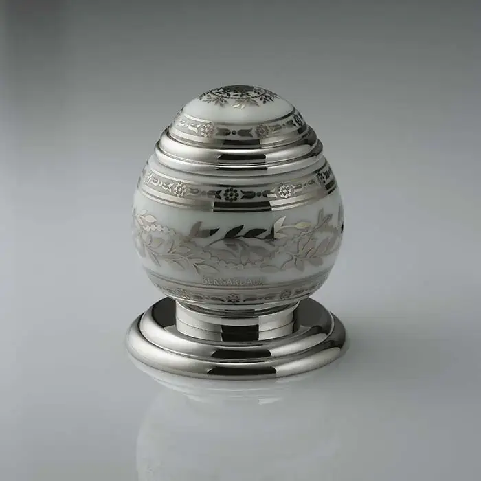 THG MARQUISE BLANC DECOR PLATINE Китайская лакированная коробка с белой керамической крышкой Ø126 мм., middle size, декор платина, цвет: серебро