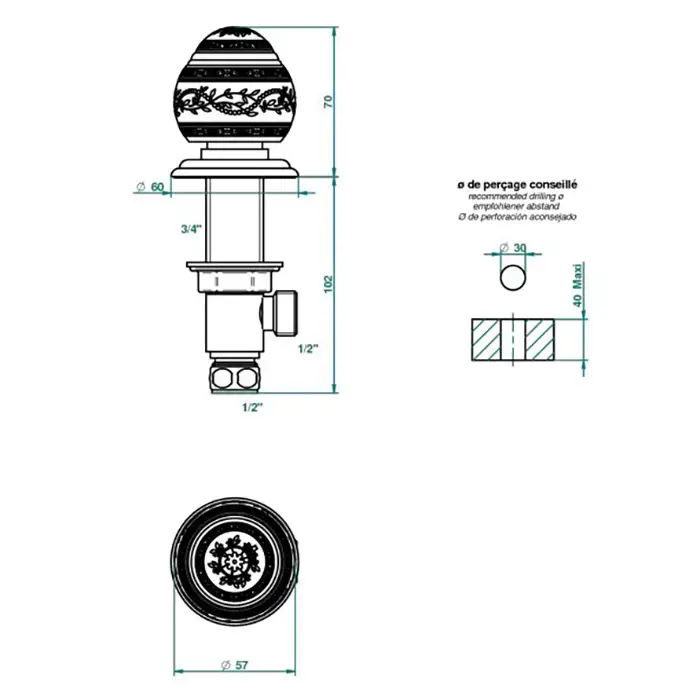 THG Marquise blanc decor platine Вентиль смесителя для раковины, ручка белая, декор платина, цвет: хром