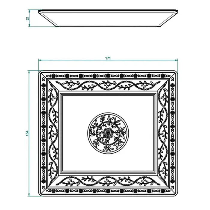 THG MARQUISE NOIR DECOR OR Поднос керамический 171х154 мм., настольный, middle size, декор черный/золото, цвет: белый