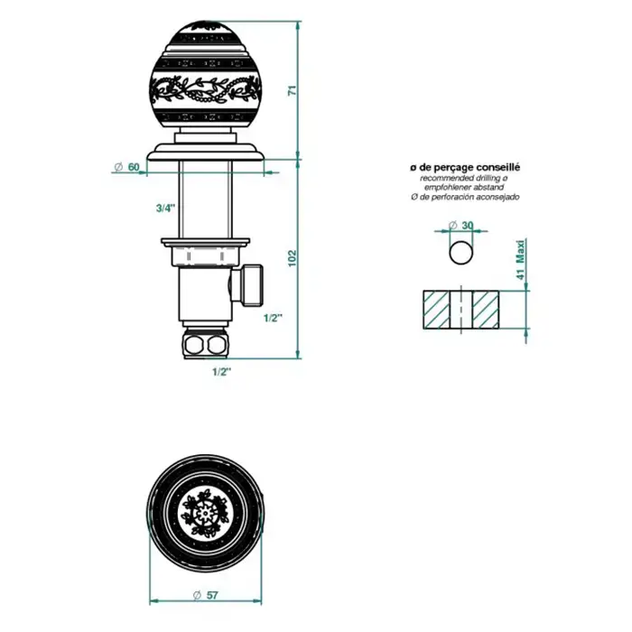 THG MARQUISE NOIR DECOR OR Ручка дверная одинарная, декор черный/золото, цвет: полированное золото