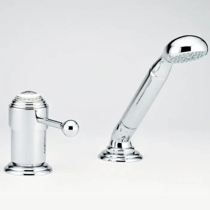 THG Marquise platinum decor Смеситель на борт ванны на 2 отв, однорычажный, без излива, с ручным душем, ручки белые, декор платина, цвет: хром