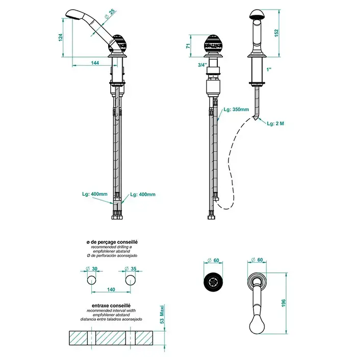 THG Marquise porcelaine blanche Ручной душ на борт ванны, 2 отв., цвет: хром/платина/белый фарфор