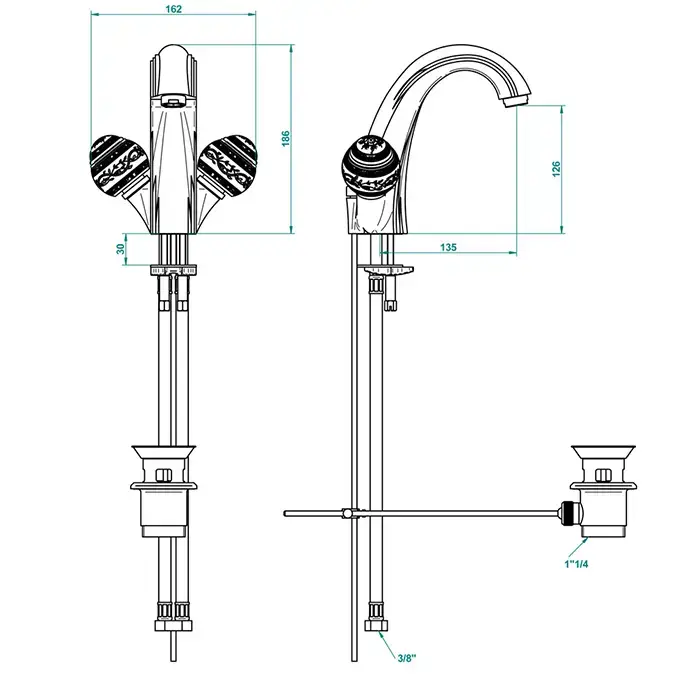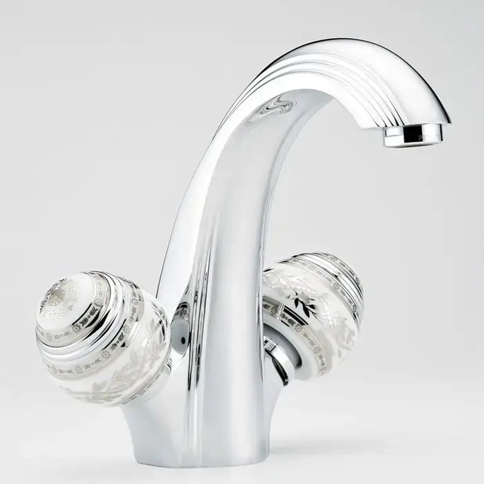 THG Marquise blanc decor platine Вентиль смесителя для раковины, ручка белая, декор платина, цвет: хром