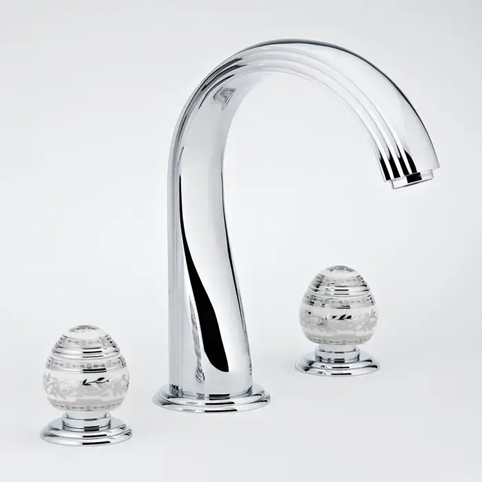 THG Marquise blanc decor platine Вентиль смесителя для раковины, ручка белая, декор платина, цвет: хром