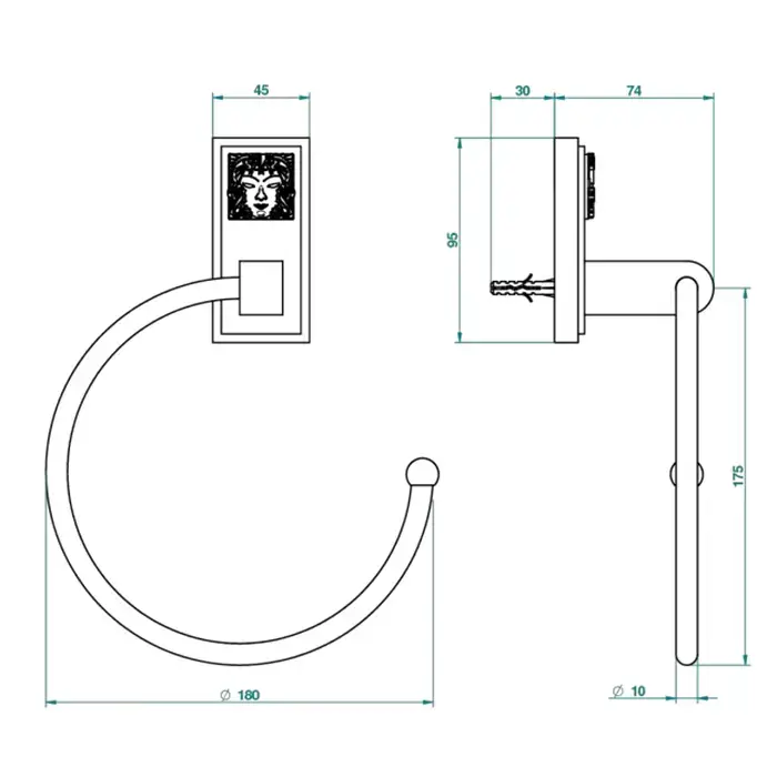 THG Masque de Femme métal gravé Полотенцедержатель - кольцо 18см., подвесной, цвет: золото