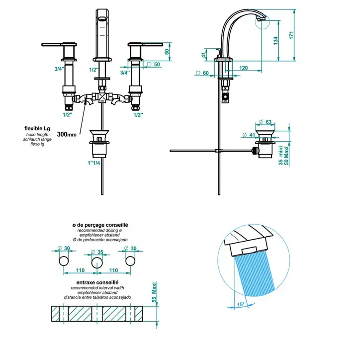 THG Métropolis à manettes cristal clair Смеситель для раковины, на 3 отв., цвет: хром/прозрачный хрусталь