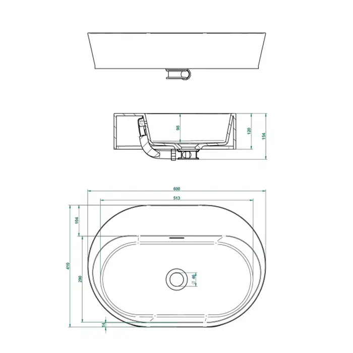 THG Monceau Раковина накладная 60х41х12cм., без отв., с переливом, цвет: белый матовый