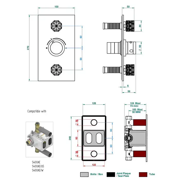 THG Nihal Porcelaine Ivoir Смеситель для душа встраиваемый, термостатический, с переключателем на 2 положения, внешняя часть, цвет: Soft gold