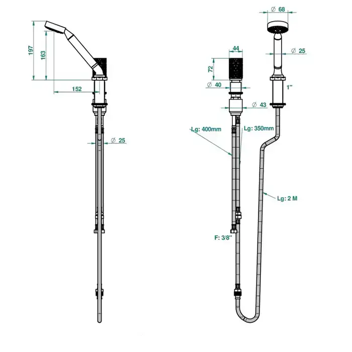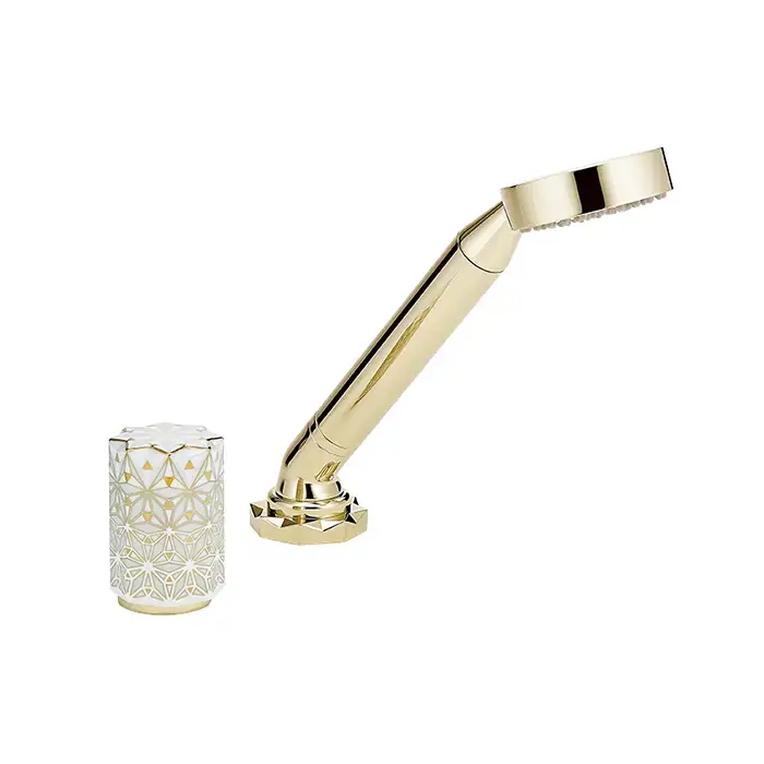 THG Nihal Porcelaine Ivoire Душевой комплект с ручным душем, держатель с подводом воды и шланг 1500 мм., цвет: Soft gold