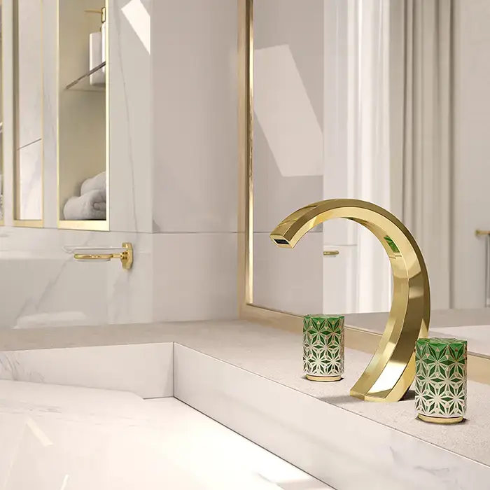 THG Nihal Porcelaine Verte Смеситель для раковины на 3 отверстия, с донным клапаном, цвет: Soft gold