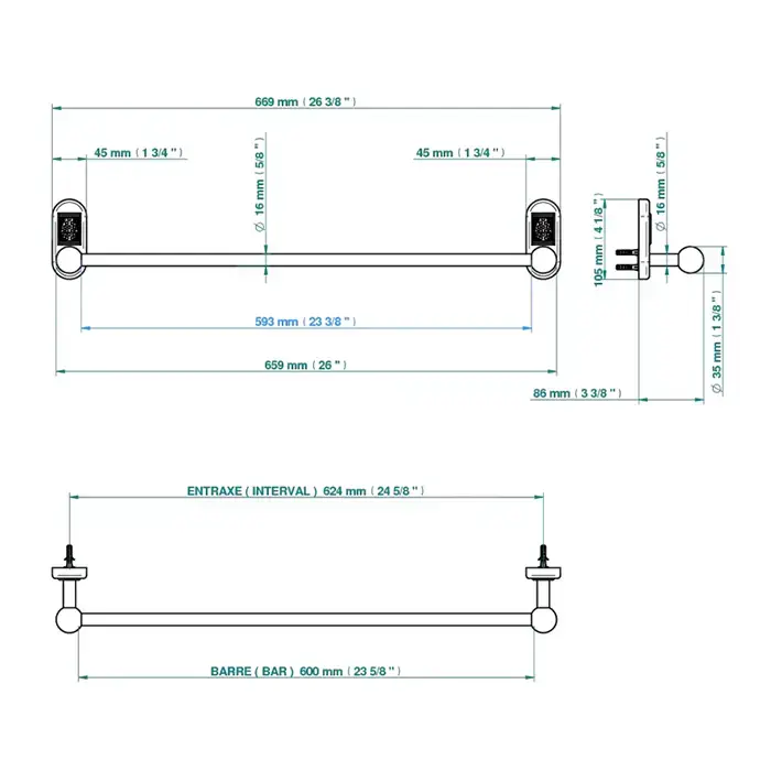 THG Oceania Полотенцедержатель 60см, подвесной, цвет: хром/прозрачный хрусталь