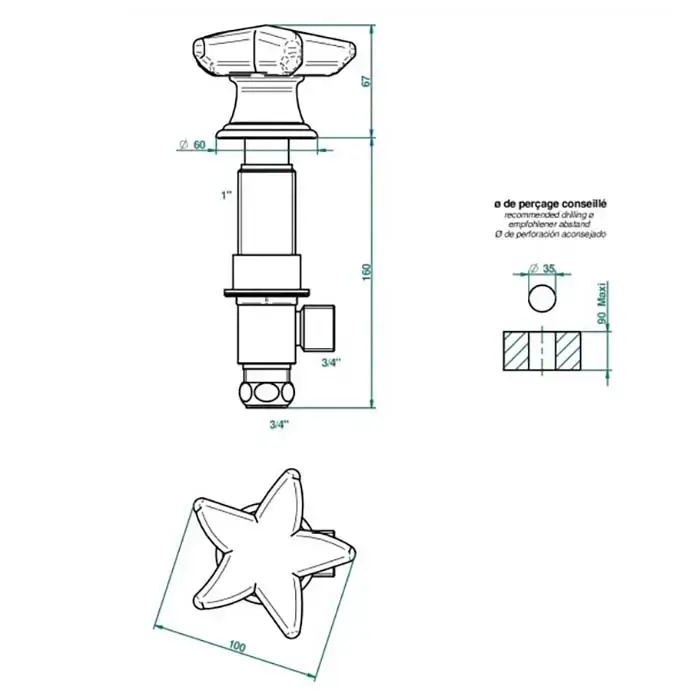 THG Oceania Вентиль смесителя для ванны, цвет: хром