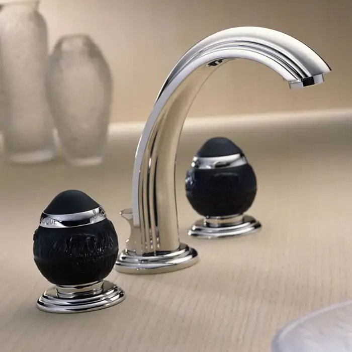 THG Panthere Cristal noir Смеситель для раковины, 3 отв., цвет: хром/черный хрусталь