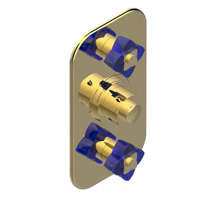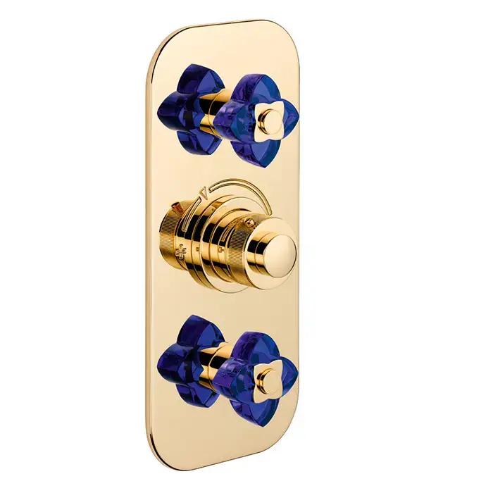THG Pétale de cristal bleu Смеситель для душа, термостатический, 2 потока, цвет: золото/синий хрусталь