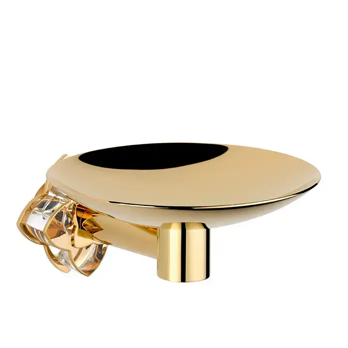 THG Pétale de cristal clair liseré doré Мыльница металлическая ø 15см., подвесная, цвет: золото/прозрачный хрусталь