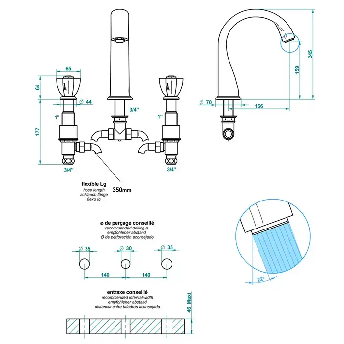THG Petale de Cristal noir Смеситель для раковины, 3 отв., цвет: хром/черный хрусталь