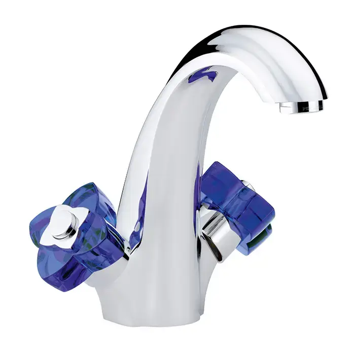 THG Pуtale de cristal bleu Смеситель для раковины, 1 отв., цвет: хром/синий хрусталь