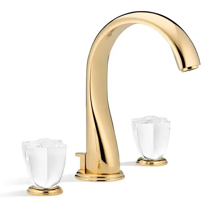 THG Pуtale de cristal clair Смеситель для раковины, 3 отв., цвет: золото/прозрачный хрусталь