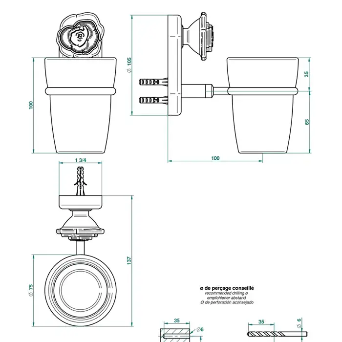 THG Rose Мыльница стеклянная, подвесная, цвет: золото/розовый
