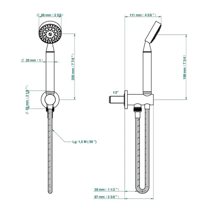 THG Spirit Душевой гарнитур: с ручным душем, настенным держателем, подводом воды и шлангом 150см., цвет: Soft matt gold