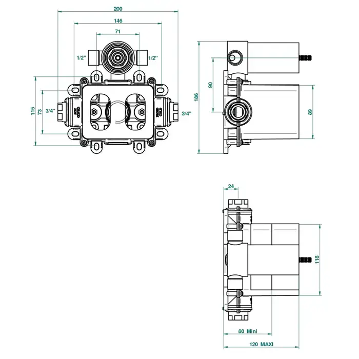 THG Встраиваемая часть термостатического смесителя