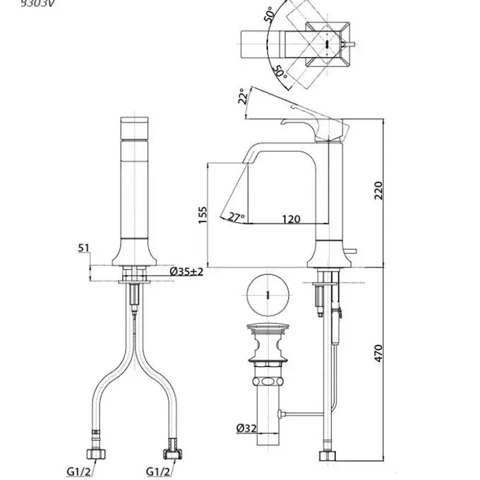 Toto GC Смеситель для раковины, на 1 отв., со сливным клапаном, цвет: хром TLG08303R