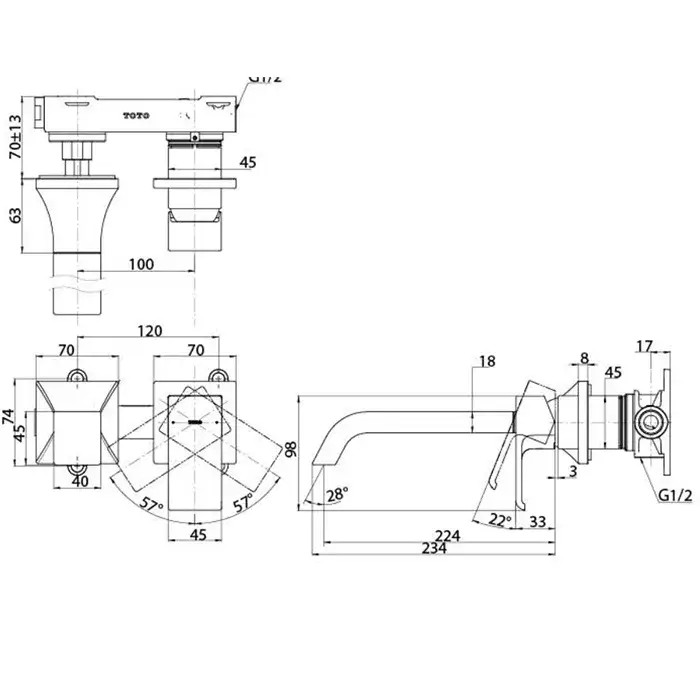 Toto GC Смеситель для раковины встраиваемый на 2 отв., цвет: хром TLG08308R