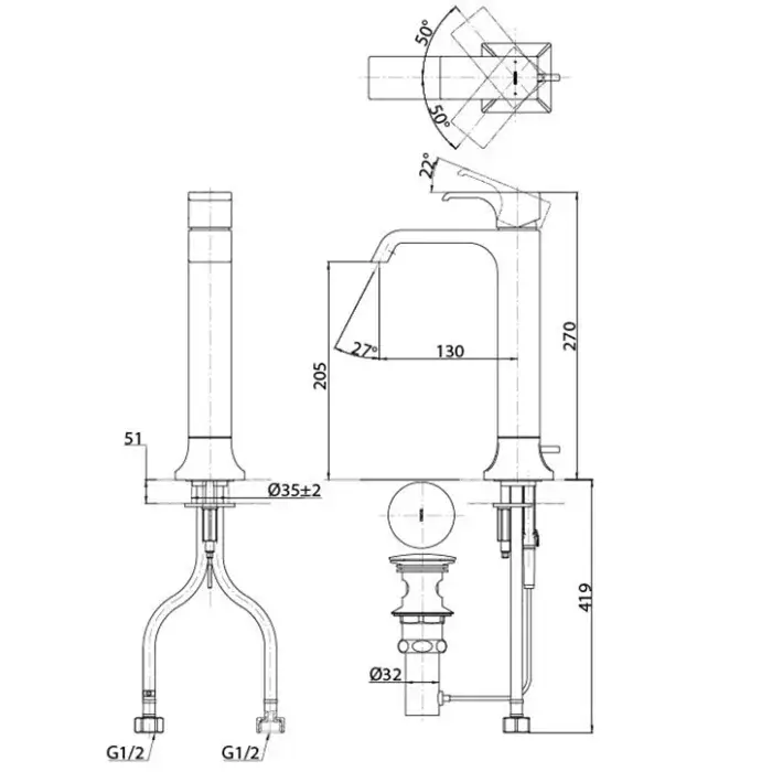 Toto GC Смеситель для раковины высокий на 1 отв., со сливным клапаном, цвет: хром TLG08305R
