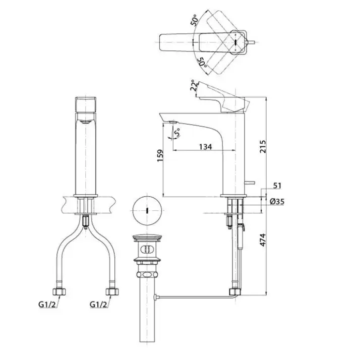 Toto GE Смеситель для раковины средний на 1 отв., со сливным клапаном, цвет: хром TLG07303R