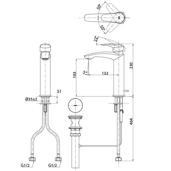 Toto GM Смеситель для раковины высокий, на 1 отв., со сливным клапаном, цвет: хром TLG09305R