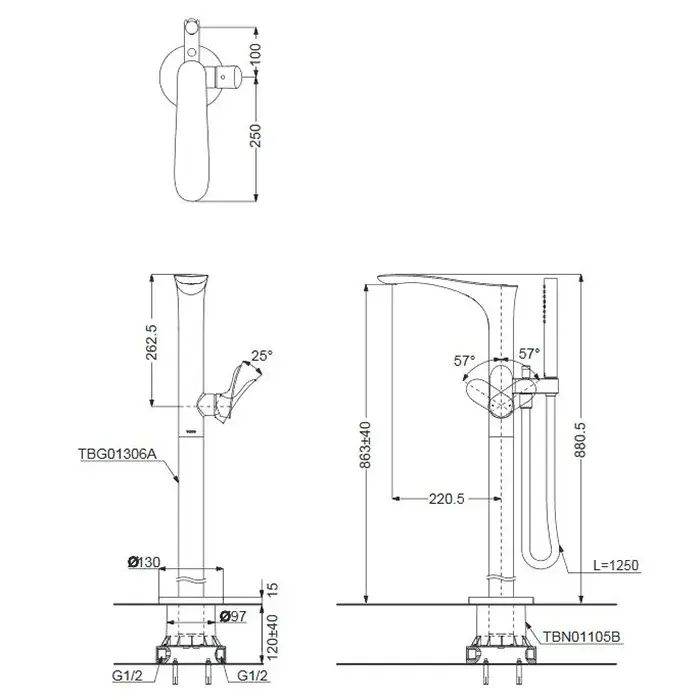 Toto NC Смеситель для ванны отдельностоящий с ручным душем, Active Wave, цвет: хром TBG01306R