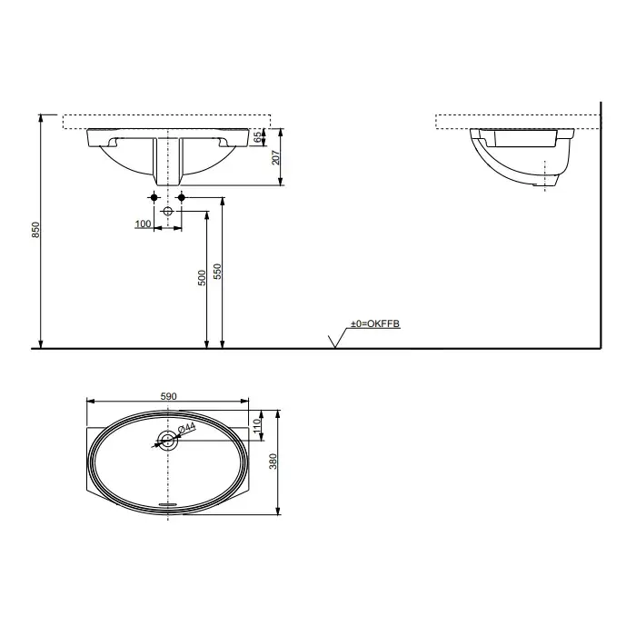 Toto WU Раковина встраиваемая снизу 59x38 см, с переливом, цвет: белый LW1536Y