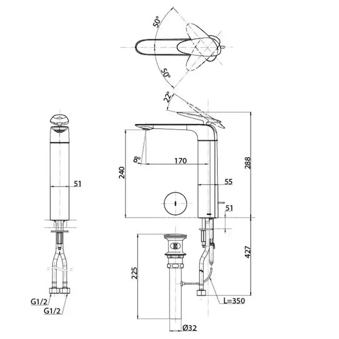 Toto ZA Смеситель для раковины высокий на 1 отв., со сливным клапаном, цвет: хром TLP03301R