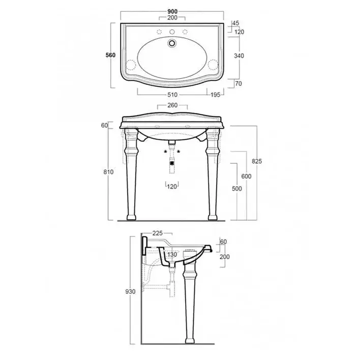 TW King Структура металлическая под раковину-консоль 91х56хh85 см, цвет отделки бронза TWKI3090.2br