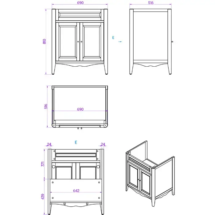 TW Veronica База с раковиной Simas 105х56 см, 2 верх.ящ. 3 расп., цвет Vintage VER6105-V+AR874bi*1