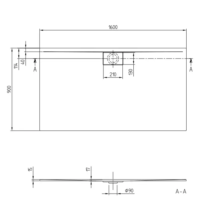 Villeroy & Boch Architectura Душевой поддон 160х90х1,5 см, цвет: альп. белый UDA1690ARA215GV01