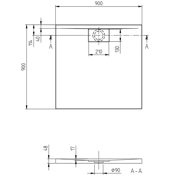 Villeroy & Boch Architectura Душевой поддон 90х90х4,8 см, акрил, цвет: альп. белый UDA9090ARA148V01